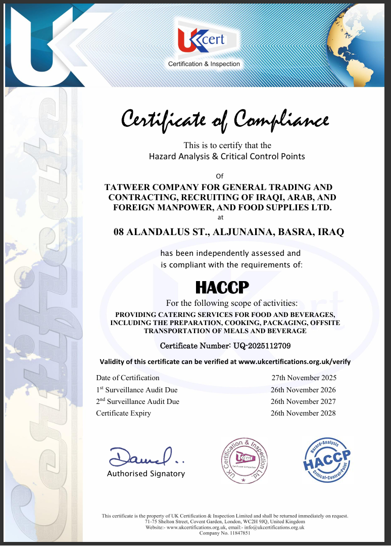 2025112709 - tatweer company for general trading and contracting- recruiting of iraqi- arab- and foreign manpower- and food supplies ltd. - haccp