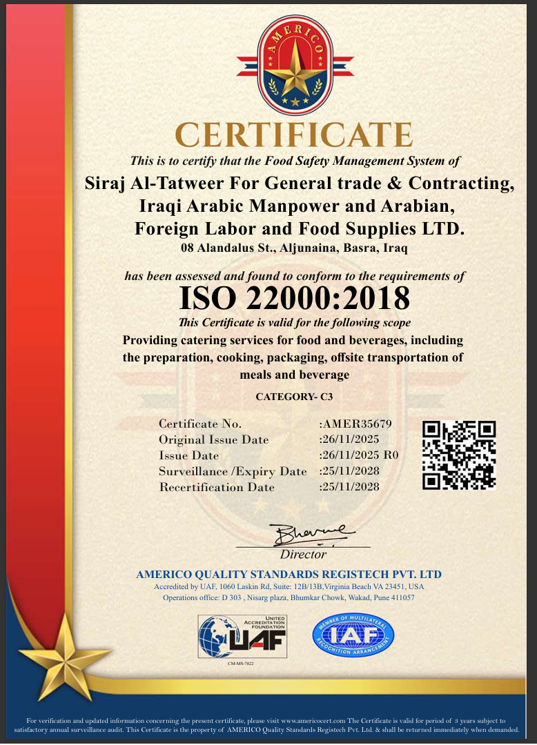 UAF Americo-ISO 22000- Siraj Al-Tatweer Company